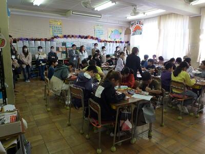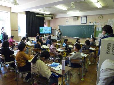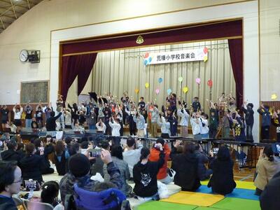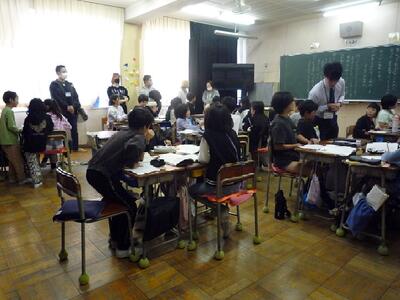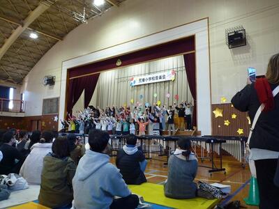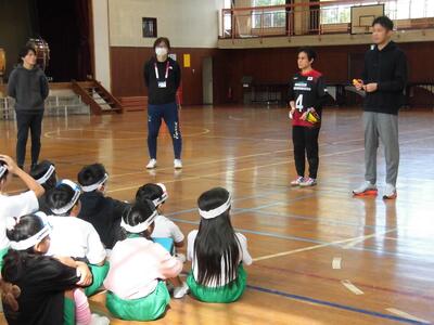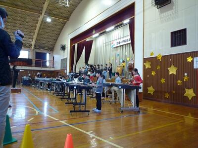 ひまわり学級の子供たちは、朝から電車にのって北秋津小学校で行う特別支援学級3校交流会に参加しました。南小と北秋津小の子供たちとゲームをしたりかけっこリレーをしたり、参加者全員とパラバルーンをしたりしました。ゲームや閉会式の進行などの役割をする子もいました。事前に練習をした成果が十分に発揮できたいへん立派でした。