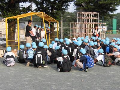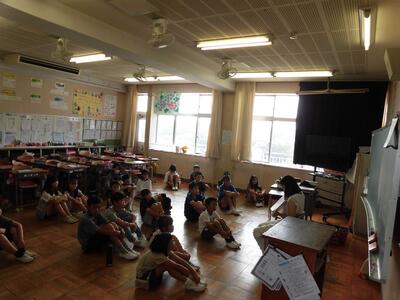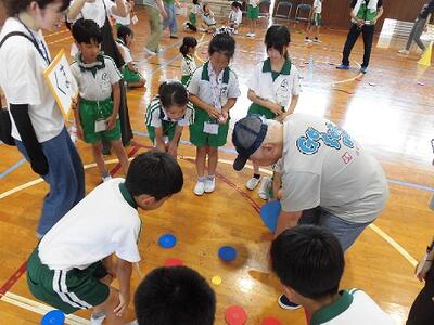 1時間目には3年生が体育館でディスコン体験がありました。荒幡町内会の皆様、PTA育成会の皆様のご協力のもと、楽しく体験できました。体験した子供たちに「上手に投げるこつは?」と尋ねると、「力を入れすぎないことです」「目線を下げて投げることです」と答えてくれました。児童の感想発表では「またやりたいから、また来てください」と言っていました。スポーツを通して地域の皆様との交流もできました。ありがとうございました。