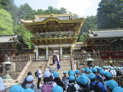 今日、6年生が日光へ1泊2日の修学旅行に出発しました。多くの保護者の方に見送られ、青空の下、「いってきまーす」と元気なあいさつでバスに乗り込んでいきました。