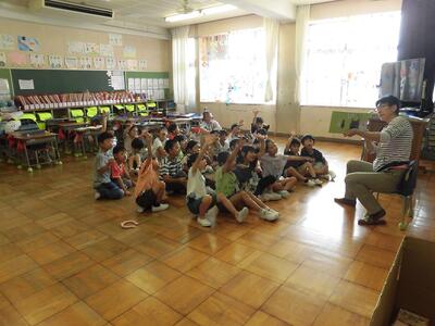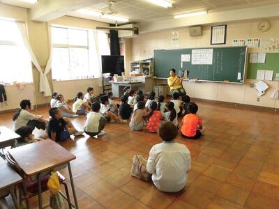 6年生をはじめ高学年のクラスでは、落ち着いた雰囲気で全員が集中して聞いているようでした。一方で低学年のクラスでは、ボランティアさんの話に歓声が上がったり、質問に手を挙げて答えたりと、楽しんで参加しているようでした。学年に応じてボランティアさんも絵本の選び方や読み聞かせの方法を工夫されているんだなと思いました。