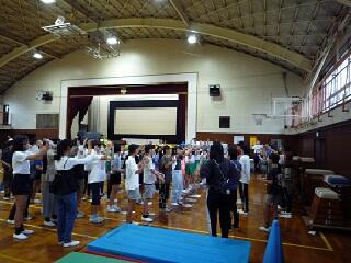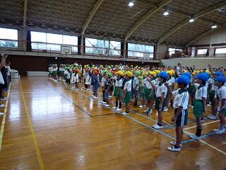 10月1日(水)は運動会全体練習と組み開き集会がありました。久しぶりに体育館に全校児童が集まりました。運動会の歌「ゴーゴーゴー」を元気いっぱいな歌声を体育館中に響かせていました。その後は組み開き集会です。代表委員の児童の進行で応援団が元気いっぱいに挨拶と意気込みを発表しました。