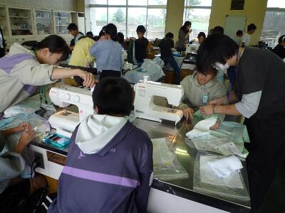 今日は5年1組の家庭科の授業では、ボランティアの皆様の協力のもと、ミシンによるエプロンづくりをしました。前回は練習布をミシンで縫う活動でしたが、今日は実際にエプロンづくりに取り組みました。先週学んだことが生かされていて、ミシンの準備にも縫う作業にも手際にょさを感じました。ご協力ありがとうございました。