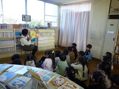 1年1組は図書室での読書の時間でした。じっくり読書をした後は、お楽しみの図書館司書による読み聞かせに、みんな楽しそうに聞き入っていました。