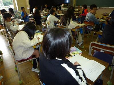 4年1組では秋についての作文を書いていました。ハロウィン、読書、秋の味覚など、子供たちが感じる秋、秋の好きなところなどについてノートに書きだした後、作文にまとめていました。