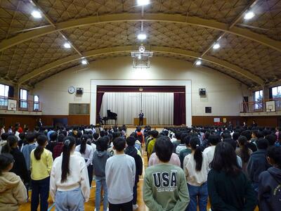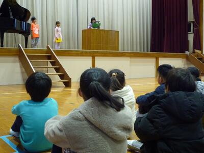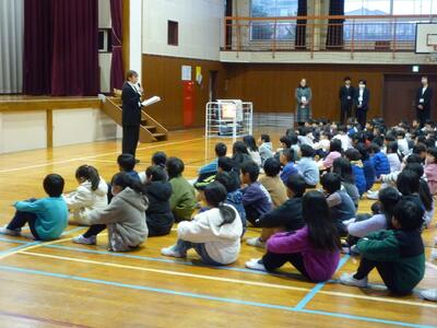 2年生、3年生、6年生の代表児童が、「音楽会で心を一つ歌うことができたこと」、「運動会の開会式で準備体操を堂々とできたこと」など、2学期の振り返り、感想を発表してくれました。終業式のあと、冬休みを安全に過ごすための注意点について話をしました。(おうちの人に行き先を伝えること、自転車の飛び出しやヘルメットの着用、お金の使い方等)
