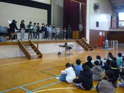 保健集会 投稿: 荒幡小承認者 (09:06) 1月27日(火)の朝の時間に保健委員会の子供たちによる「健康集会」がありました。 子供たちと担当教員で構想したインフルエンザの予防についての劇を上映しながらクイズ形式で学ぶ内容でした。 子供たちの演技に見ている児童みんなもとても楽しんでいました。 Tweet -