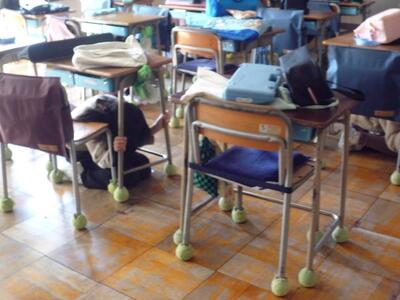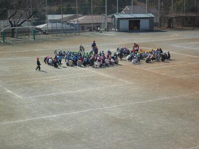 業間休みには避難訓練がありました。校庭で遊んでいた子は中心に集まって静かに避難していました。教室では子供たちが椅子の下にじっと隠れていました。指示がなくてもしっかりと自分の命を守る行動ができてすばらしかったです。
