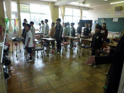 5年生の教室の前を通ると、5年生が「旅立ちの日に」の歌練習をしていました。
