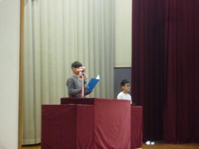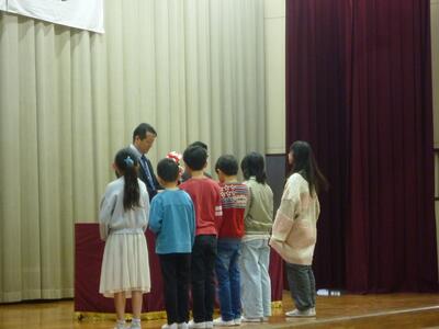 今年度の振り返りと来年度に向けての抱負を5年生の児童2名が発表しました。林間学校やなかよしタイムや親善音楽会での思い出を振り返るとともに、「来年度は新1年生を優しくまとめられる6年生になりたい!」「リーダーとして下級生のお手本になれるよう頑張ります!」と堂々と発表しました。とてもはつらつとしていて、来年度が楽しみになりました。