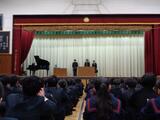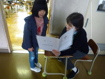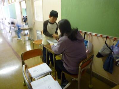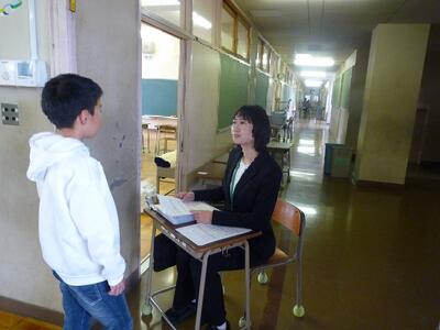 修了式の後、各教室を回ってみると、通知表を渡している学級がありました。担任から一人ひとり通知表を見ながら、3学期の振り返りや次の学年の課題について話をしながら渡していました。「頑張ってね」と力強く握手をして、照れくさそうにしている子もいました。
