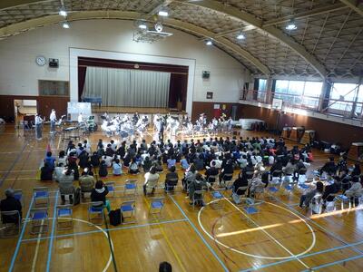 6時間目には山口中学校の吹奏楽部の皆さんが来校し、5,6年生を対象に演奏会を開いてくれました。新旧のアニメソングなどたくさんの楽曲を披露してくれました。アンコールにもこたえてくれました。小学校では体験することのない楽器の演奏に、子供たちは夢中になって聞いていました。「中学校では吹奏楽部に入りたい」という6年生もいました。