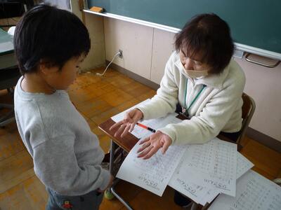 本校には、教員や事務職員、庁務手、給食配膳員のほかに、学習支援員、特別支援教育支援員、心身障害児介助員(ひまわり学級担当)、こころのふれあい相談員、学校司書、小学校外国語支援員という職の職員が勤務しています。これらの職員は、担任等と連携し、子供たち一人ひとりのサポート等を主に行っています。子供たちに寄り添い、一人一人に声掛けをしたり、わからないことや困ったことがあった時には子供たちが気楽に助けを求められるよう見守ったりと、本校にはなくてはならない存在です。